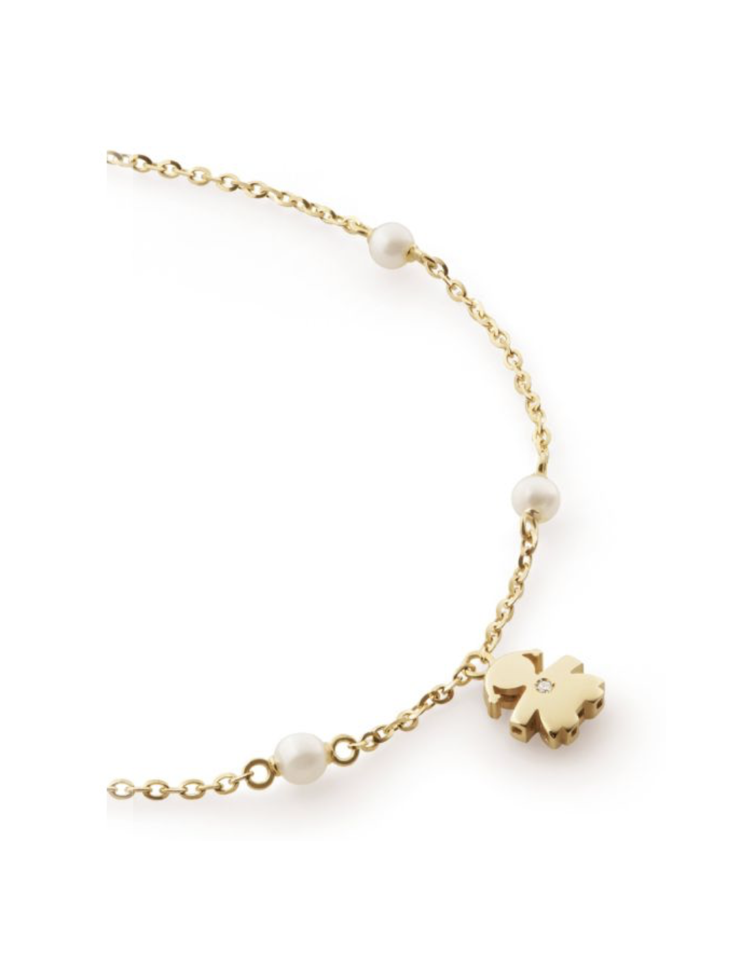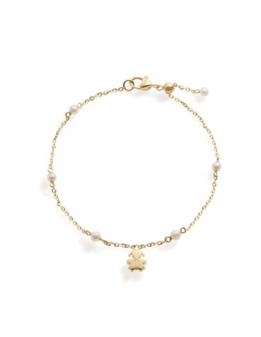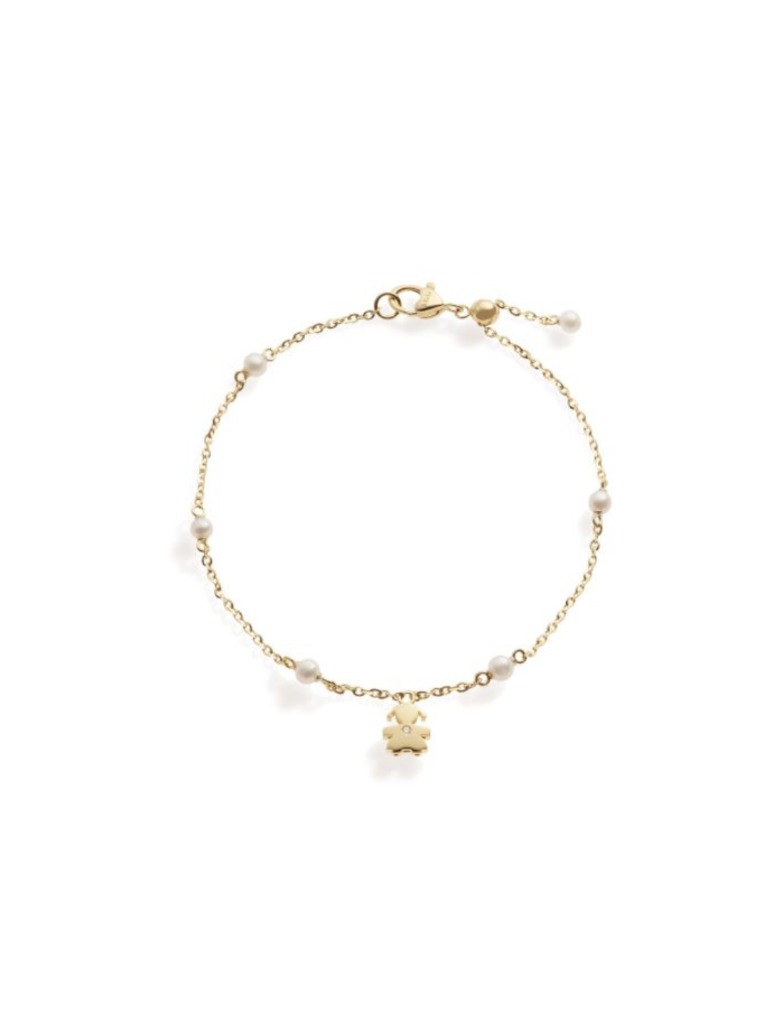 Bracciale sagoma bimba in oro giallo 9kt con perle da 3-3,5 mm e diamante da 0,005 ct