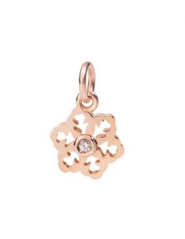 Ciondolo fiocco di neve in oro rosa 9 kt con 1 diamante bianco (ct 0.017) - modello piccolo.