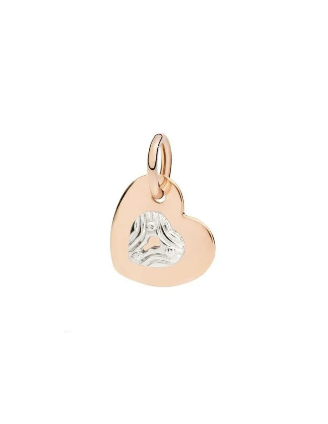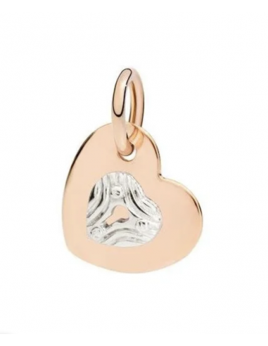 Ciondolo cuore in oro rosa 9 kt con lucchetto intagliato a mano in oro bianco 9 kt. Cordino nero incluso.